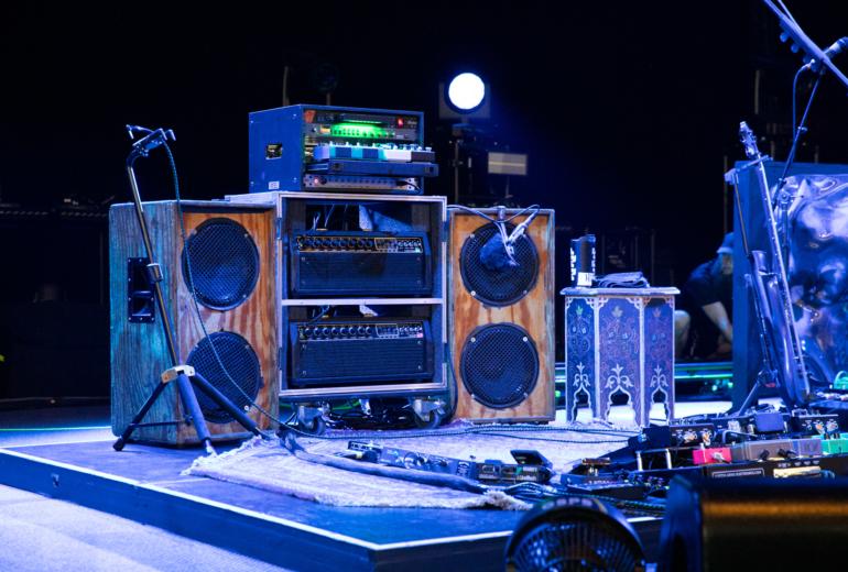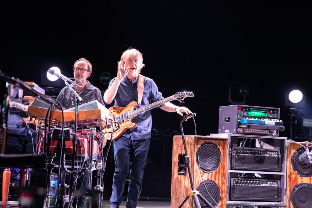 Ironically, the song that connected the most, the one that made everything in this show click for this newbie, was also its longest. Phish opened set two with “Sand,” a dreamy tune from their record Farmhouse. And then they kept playing it. And kept playing it. Depending on who from the taper section you talk to, the performance of this song alone lasted between 36 and 38 minutes, and while the runtime is in debate, the consensus seems to be that this was the longest “Sand” in Phishstory. Fishman’s drums kept a steady pattering rhythm on the snare, while McConnell offered a warm underbelly with some lead flourishes dropped in. At center stage, lead guitarist and singer Trey Anastasio’s guitar work on this song dazzled. From trilling hammer-ons to moaning bends, it ebbed and flowed, was intricate and reserved, intense and sublime. On his side of the stage Gordon answered him with solos of his own, following the steady rhythm like something from the annals of Can or Faust. (Am I being too generous with my music nerd praise just there? Perhaps. But the rock intelligentsia should not delude themselves into thinking that the experimental artists of the 70s weren’t jam bands in their own way.)