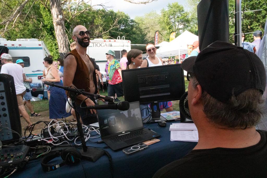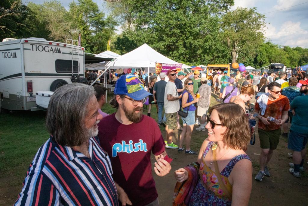WXPN’s Dan Reed and our engineering team arrived in mid-afternoon and set up at ground zero of the much-mythologized jam band parking lot scene: Shakedown Street. It’s a somewhat lawless autonomous zone in the sprawl of the parking lot, where the constant hiss of nitrous tanks and the sizzle of grilling burgers fills the air. Makeshift bars are staged, open container laws are flaunted, and one doesn’t have to walk far down the path before a stranger leans in and completely unsubtly stage-whispers “cokemollyketamine.”