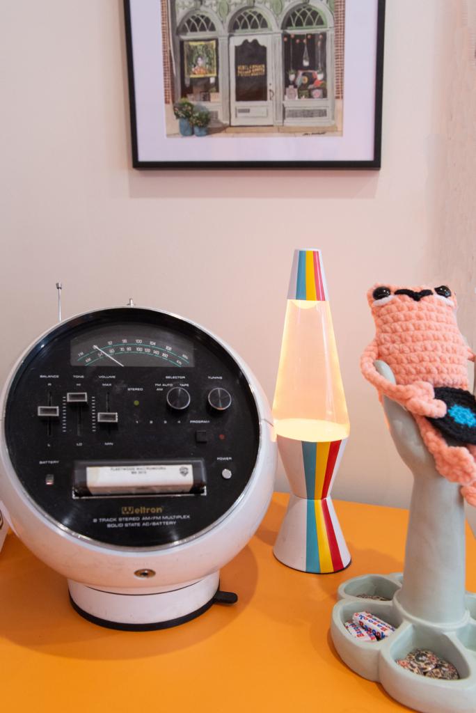 Eve Hoyt, a neon artist, contributed a magenta 45 adapter sign to Vinyl Chickie, which added to the nostalgic late 80s PeeWee’s Playhouse vibe in the shop. “The neon sign showed up by an artist who lives down the block,” says Schaffer. “She carried it over and said ‘I would like to hang it in your store than sell it.’ I’m never ever taking it down.”