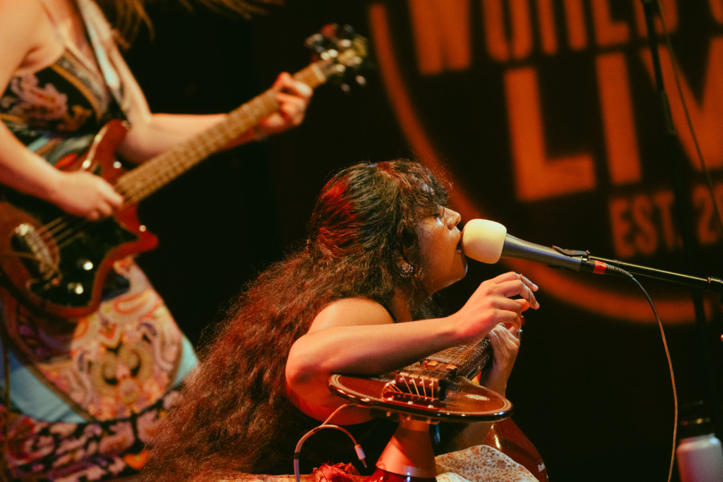 Kulfi Girls brought the afternoon’s punk energy. While they’re newer to the scene than Archawah, they’re already familiar faces at XPN, with a 2025 Key Studio Session to their name. That instrument played by lead vocalist Abi Natesh? It’s a South Indian Saraswati veena, traditionally revered for its association with the Hindu goddess of arts and learning, now reimagined by Kulfi Girls for thrashing protest music.