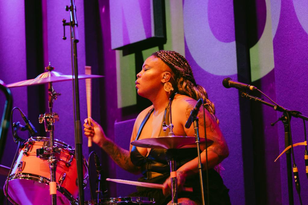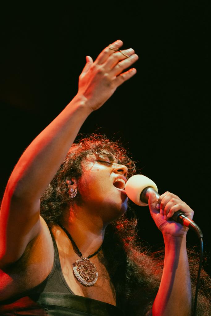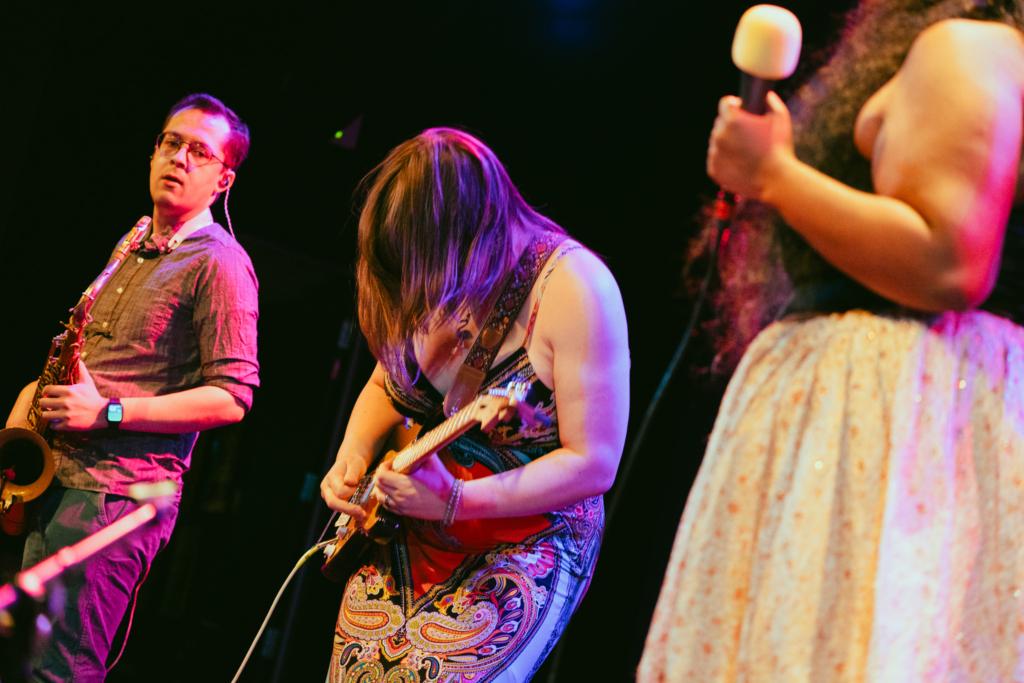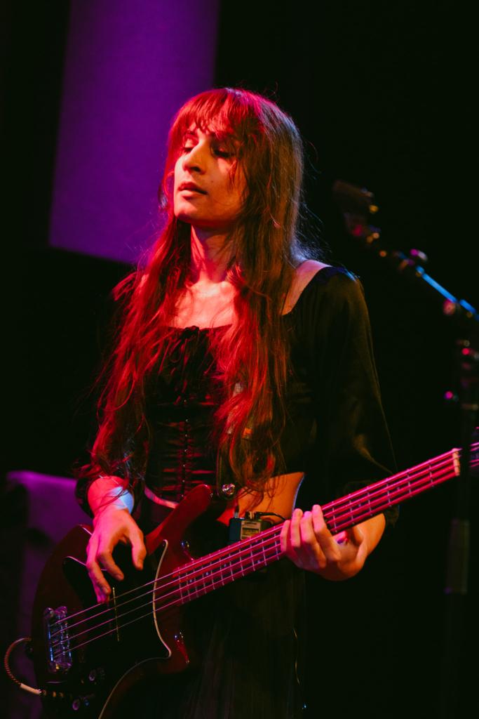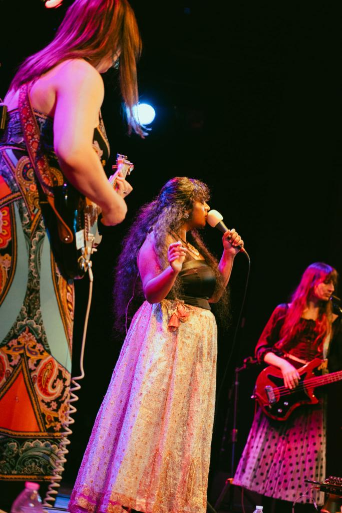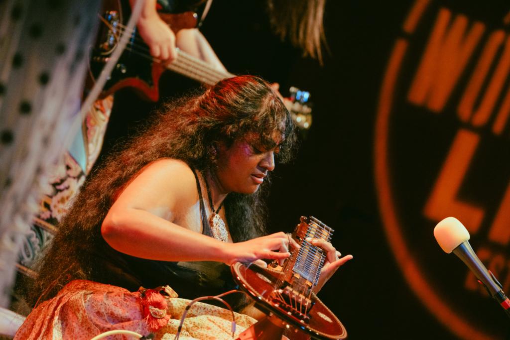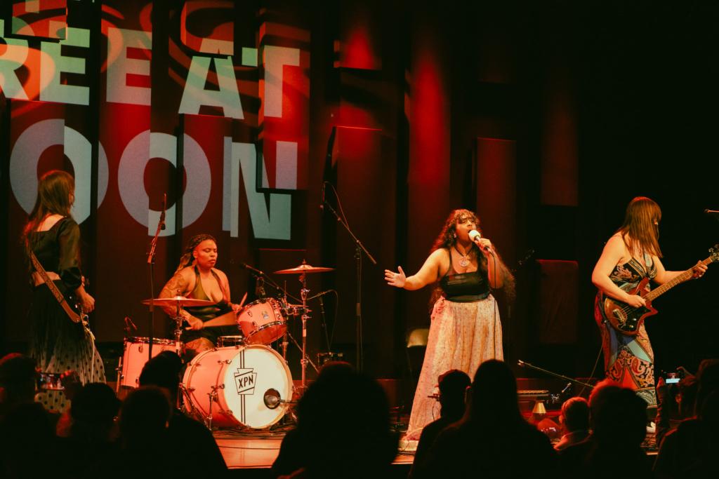 Kulfi Girls brought the afternoon’s punk energy. While they’re newer to the scene than Archawah, they’re already familiar faces at XPN, with a 2025 Key Studio Session to their name. That instrument played by lead vocalist Abi Natesh? It’s a South Indian Saraswati veena, traditionally revered for its association with the Hindu goddess of arts and learning, now reimagined by Kulfi Girls for thrashing protest music.