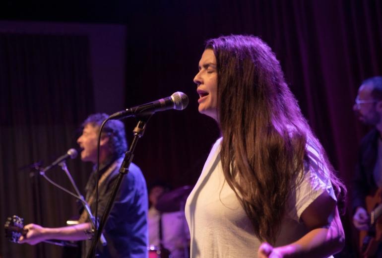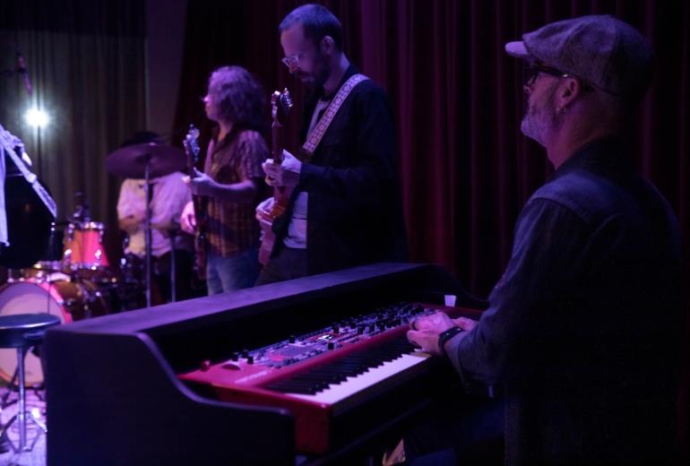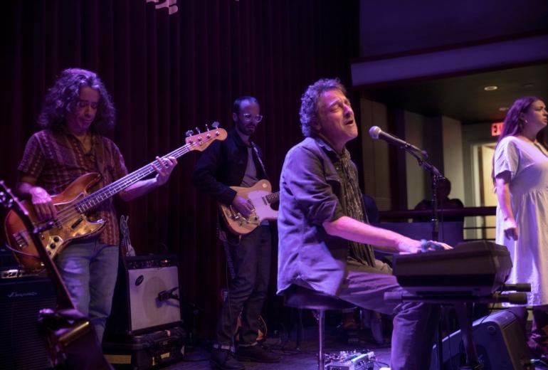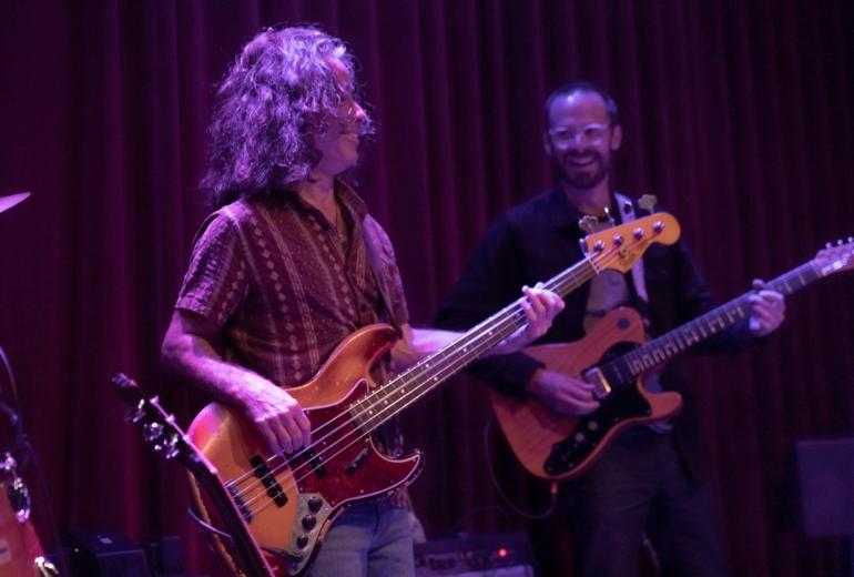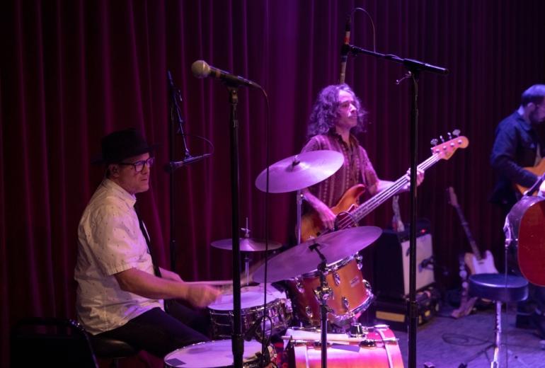 A spontaneous and special moment occurred at the end of the concert. Stepping back onstage for an encore, Ben toyed with the idea of playing an as-yet-unheard song from XI. But somebody from the crowd called out for “Astral Freak,” and with a grin, he strapped on his acoustic guitar and gave it a whirl. This song was his Arnold’s first big hit, and as he began to play it, Muir joined in with a beat, D’Agostino stepped onstage when the second verse came around to pick up his bass, and Mazer came in with guitar leads on the next chorus. And a jam ensued, practically in a Stop Making Sense kind of way.