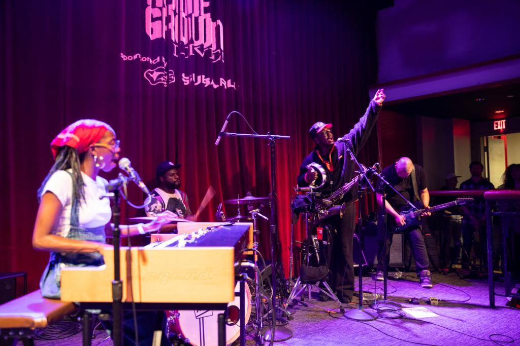 Furaha-Ali’s mastery of the sax was also on full display, with him mimicking the warble of an organ with his instrument before launching into another fiery solo. McKie got his own time in the spotlight with a drum break that had him pounding on the skins while Childs and Furaha-Ali belted out lyrics.