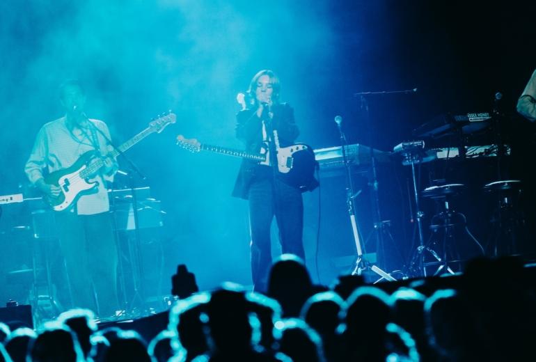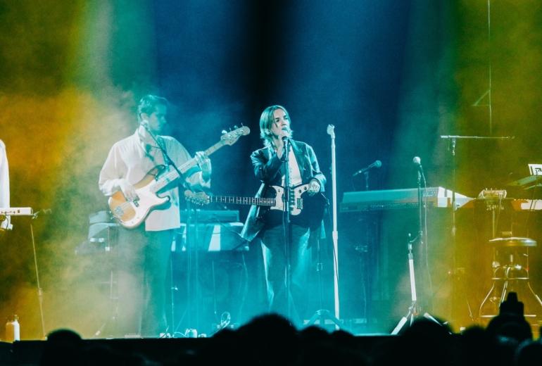 Multi-instrumentalist and producer extraordinaire Blood Orange, aka Dev Hynes, was next. He is undeniably smart. Jumping between guitar, keys, vocals, and cello, he was everywhere all the time. But sometimes, his presence was missed. There were some moments, like in “Best To You” where he handed the vocal reigns to other singers on stage when it might’ve been nicer to hear him sing. Blood Orange released his newest album Essex Honey just over a month ago. On it, he has features from Caroline Polachek and Lorde herself, but despite my own personal anticipation, he didn’t bring Lorde out to sing her brief feature. The audience went pretty wild for the more mainstream stuff, like the amazing “Champagne Coast.” It felt like they were still working out how to do these new songs live, and this maybe wasn’t the crowd for the test drive.