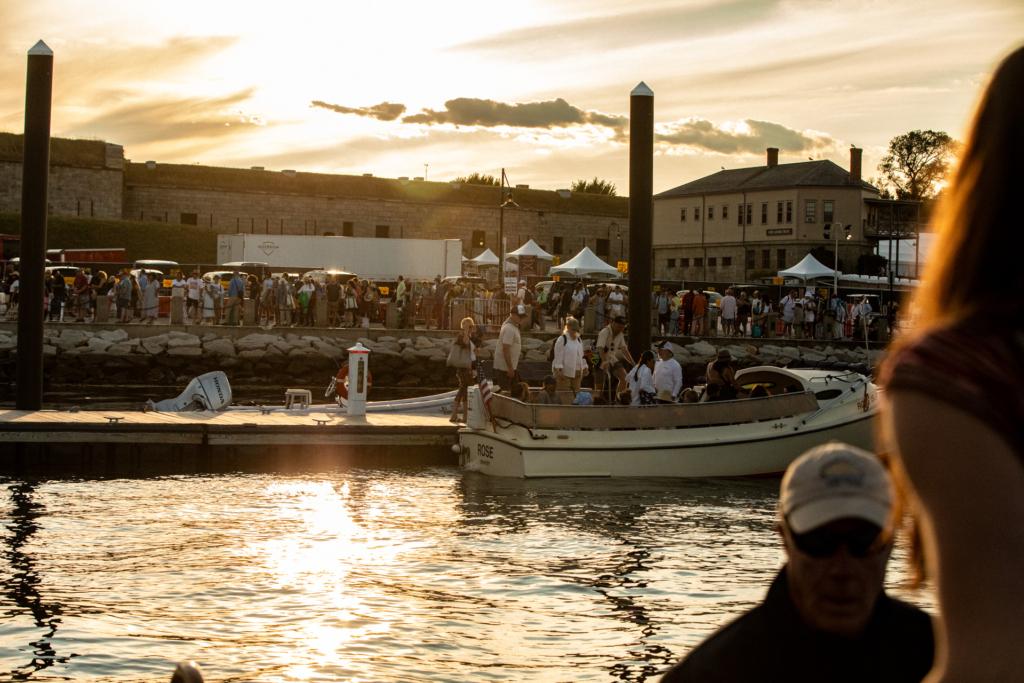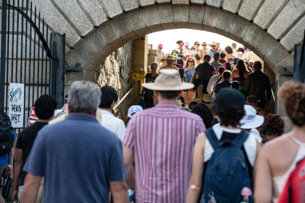 Fort Adams sits on an isolated cape just a short water taxi ride across Newport Harbor, surrounded by greenery and water. The towering cement walls of this 19th century military installation wrap around the grounds, with three stages nestled within; the Quad Stage on the interior, the Fort Stage on the exterior, and the Harbor Stage on the midway, at the end of a promenade of food vendors and crafters.