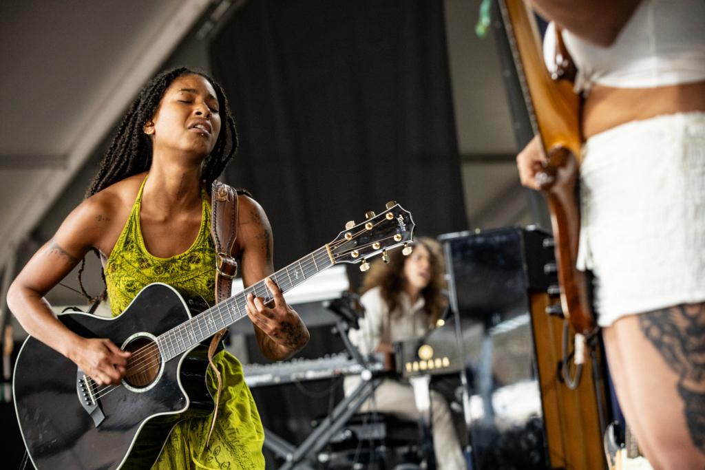 The tall stone structure, combined with tasteful amplification, minimized sound bleed from stage to stage; festival artistic director Christian McBride performed on the Fort Stage with his 15-piece big band, an explosive sound that was barely noticeable over at the Quad, where Los Angeles cinematic groove trio La Lom performed. Similarly, the London soul singer Raye — a breakout set on the festival’s first day — gave a massive performance to throngs of devotees waving signs on the Fort Stage, but if you ducked into the Harbor Stage to hear Lake Street Dive’s Rachael Price play Tin Pan Alley-style tunes with collaborator Vilray, you might not even hear the big event down the way.