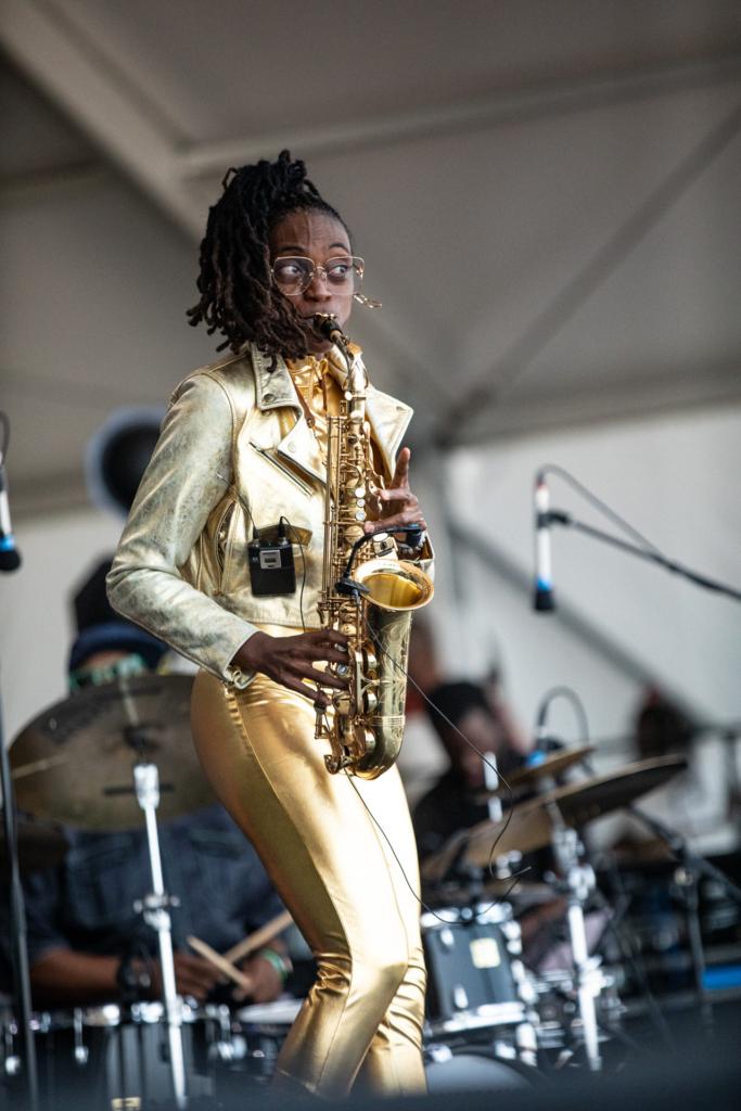 This is the magic of Newport Jazz; so much good music is in the air, you could be wandering from point A to point B and pass multiple sets beckoning you to stop in; I experienced this on the way to a photo-editing break, where the wildly eclectic Knower’s set on the Quad kept me from getting work done in the best way.