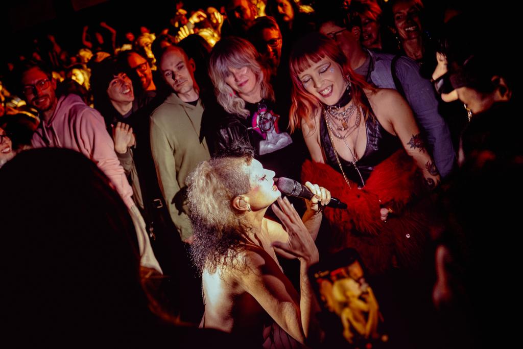 Opener Model/Actriz was the perfect appetizer for this absolutely bonkers night. The Boston-formed, Brooklyn-based four-piece’s sound comes off like a queerer Nine Inch Nails. It’s dark, clubby, danceable, and bass heavy. Vocalist Cole Haden came out in an epic gown and gloves before spending half of the set in the crowd singing with the audience. Both acts turned the Union Transfer space all around, making the crowd not only part of the performance but part of a community.