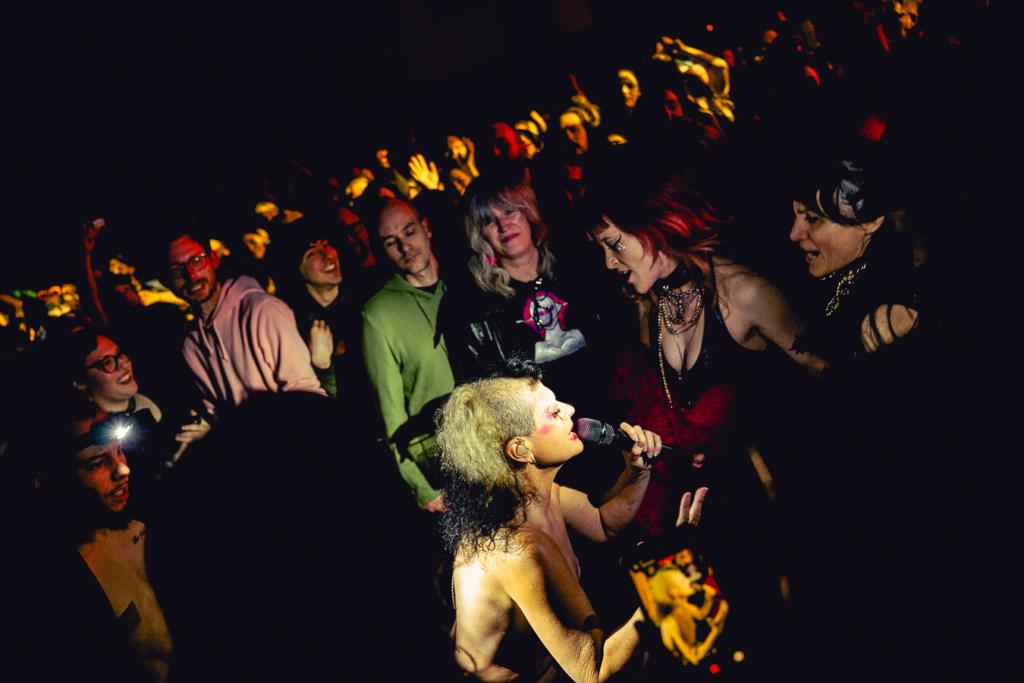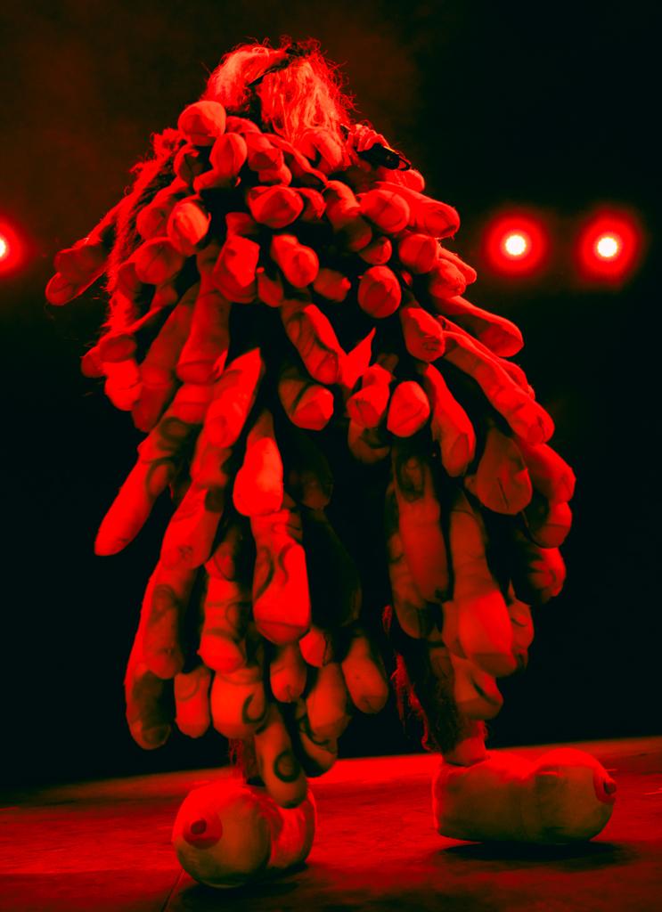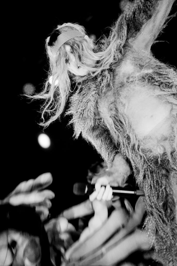 Halfway through her set at Union Transfer, Peaches took to the crowd — not so much in it as on top of it. In her platform sneakers, she told us that she wanted us to hold out our hands and let her walk on top of them. It was very Jesus walking on water, if Jesus was a pop superstar having fun on a Sunday night in Callowhill. She sang, walked, and rolled her way to the B-Stage at the soundbooth where she played “Not In Your Mouth None of Your Business.” Lit up by only her dancer’s headlights, she sang: