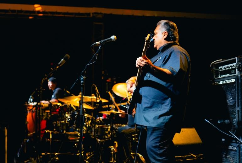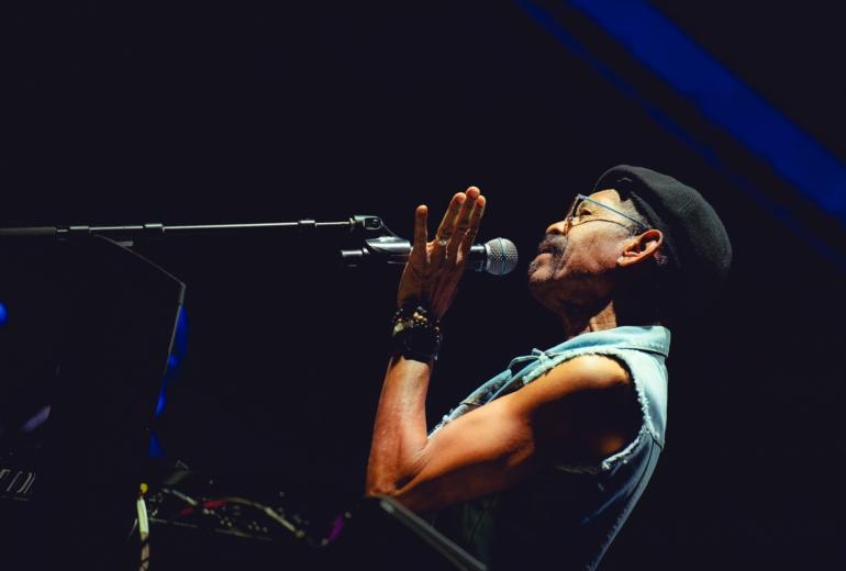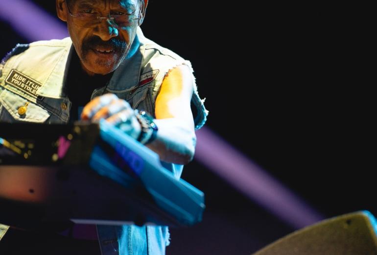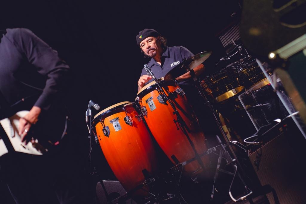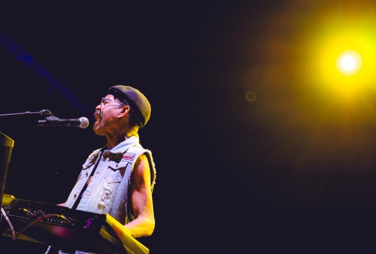 The band came out swinging with a hard-swinging version of “Baby Brother” from their 1971 classic All Day Music. In between the song’s main groove and Latin breakdowns, keyboardist / singer Lonnie Jordan lit the crowd up with some Sly Stone-style, churchified organ runs. Jordan — a founding member of War — led the band with charisma, belting out songs and disarming the crowd with quips and sly jokes. After “Baby Brother” broke down into a brief but thunderous drum solo from Sal Rodriguez, Jordan broke into a monologue, backing himself on organ. From there, the band launched into the slick, understated groove of “Slipping Into Darkness.” During another organ break, Jordan chided the crowd: “I smell weed, and it smells good. I’m getting high…contact high.” Between the song’s slinky rhythm parts and James Baker’s razor-sharp guitar solo, it’s surprising how strong and progressive the song still sounds nearly 50 years after it was composed.